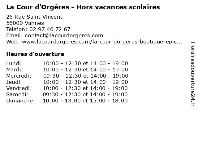 | Samedi | 09:30-12:30 et 14:00-19:00 |