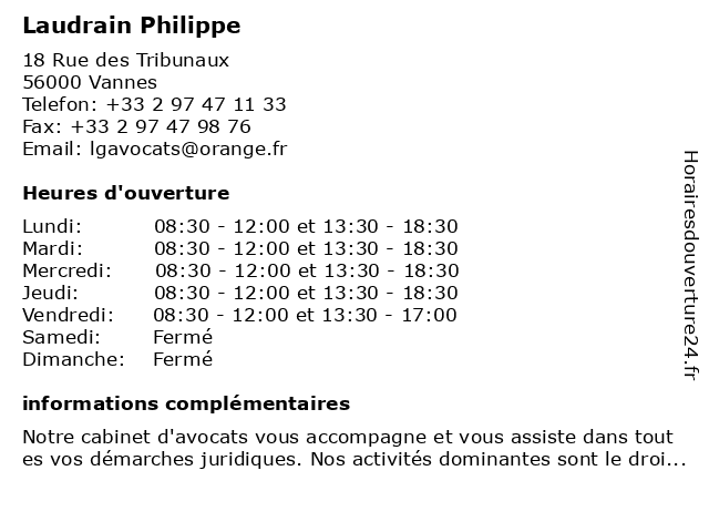 | Lundi | 08:30-12:00 et 13:30-18:30 |