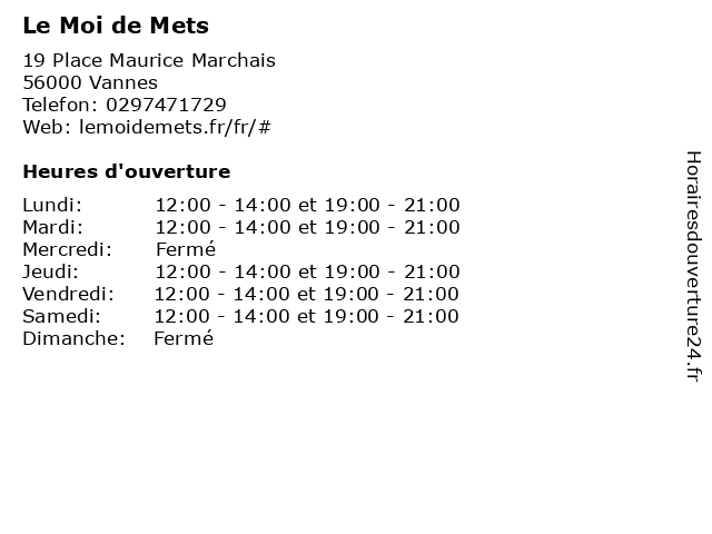 | Mardi | 12:00-14:00 et 19:00-21:00 |