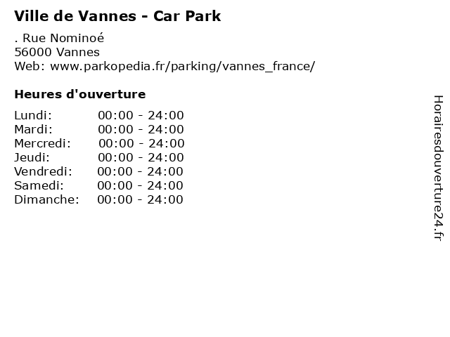 1 Ville de Vannes - Car Park (Distance: 0,07 km) . Rue du 11 Novembre 1918, 56000 Vannes automobile, car, de, park, parking, services, vannes, ville 2 Ville de Vannes - Car Park (Distance: 0,30 km) . Place du Maréchal Liautey, 56000 Vannes automobile, car, de, park, parking, services, vannes, ville 3 Ville de Vannes - Car Park (Distance: 0,30 km) . Rue du Carré des Vosges, 56000 Vannes automobile, car, de, park, parking, services, vannes, ville 4 Ville de Vannes - Car Park (Distance: 0,39 km) . Rue Hoche, 56000 Vannes automobile, car, de, park, parking, services, vannes, ville 5 Ville de Vannes - Car Park (Distance: 0,53 km) . Place de la Libération, 56000 Vannes automobile, car, de, park, parking, services, vannes, ville 6 Ville de Vannes - Car Park (Distance: 0,59 km) . Place de Bretagne, 56000 Vannes automobile, car, de, park, parking, services, vannes, ville |