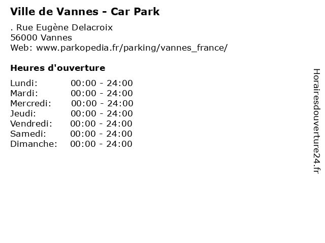 1 Ville de Vannes - Car Park (Distance: 0,69 km) . Rue Abbé Jean-Marie de la Mennais, 56000 Vannes automobile, car, de, park, parking, services, vannes, ville 2 Ville de Vannes - Car Park (Distance: 0,72 km) . Place du Colonel le Ménach, 56000 Vannes automobile, car, de, park, parking, services, vannes, ville 3 Ville de Vannes - Car Park (Distance: 1,25 km) . Rue de Strasbourg, 56000 Vannes automobile, car, de, park, parking, services, vannes, ville 4 Ville de Vannes - Car Park (Distance: 1,50 km) . Rue du 11 Novembre 1918, 56000 Vannes automobile, car, de, park, parking, services, vannes, ville 5 Ville de Vannes - Car Park (Distance: 1,54 km) . Rue Nominoé, 56000 Vannes automobile, car, de, park, parking, services, vannes, ville 6 Ville de Vannes - Car Park (Distance: 1,58 km) . Rue des 4 Frères Créac’h, 56000 Vannes automobile, car, de, park, parking, services, vannes, ville |
