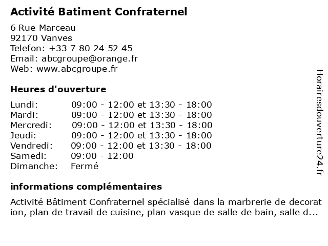 | Vendredi | 09:00-12:00 et 13:30-18:00 |