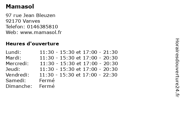 | Mardi | 11:30-15:30 et 17:00-20:30 |