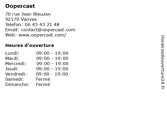 Mercredi | 09:00-19:00 |