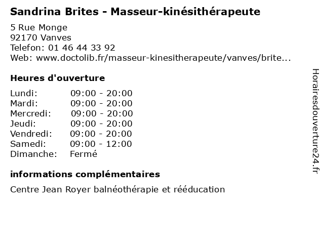 | Samedi | 09:00-12:00 |