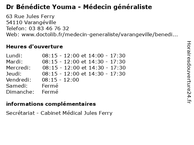 | Lundi | 08:15-12:00 et 14:00-17:30 |