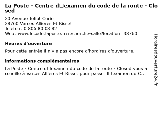 | Appeler La Poste - Centre d’examen du code de la route - Closed | |