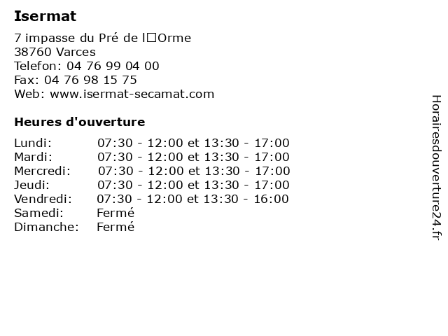 Lundi | 07:30-12:00 et 13:30-17:00 |