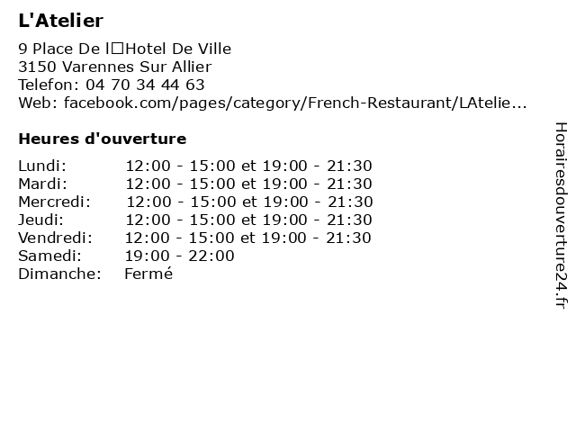 Lundi | 12:00-15:00 et 19:00-21:30 |