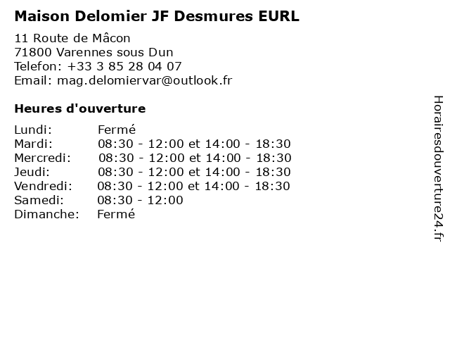 | Mardi | 08:30-12:00 et 14:00-18:30 |