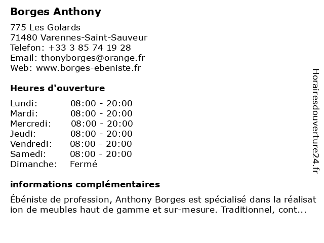 1 Romain Borges - Ostéopathe (Distance: 12,18 km) 16 Place Maternelle, 71500 Louhans bien-être, borges, ostéopathe, romain, santé, services 2 Guerard Anthony (Distance: 25,49 km) 51 Rue Du 19 Mars 1962, 39570 Courlans anthony, directe, guerard, vente 3 La Ferme Du Pain Sur La Planche (Distance: 27,99 km) Lieu Dit Les Perriers Le Saunier, 39320 Gigny anthony, bailleurs, biens, dubois, ferme, immobiliers, nra, pain, planche 4 Anthony Lamur - Ostéopathe (Distance: 34,92 km) 27 place André Galland, 01250 Jasseron anthony, docteur, dr, lamur, manipulations, massages, médecin, médecine alternative, ostéopathe, secrétariat, soin 5 Da Silva Anthony (Distance: 34,97 km) 50 Rue Bourgmayer, 01000 Bourg En Bresse anthony, da, restaurants, silva 6 Dr Anthony Texier - Médecin biologiste (Distance: 40,41 km) 350 Boulevard Louis Escande, 71018 Macon anthony, biologiste, consultation, docteur, dr, med, médecin, médecine, texier, traitement |