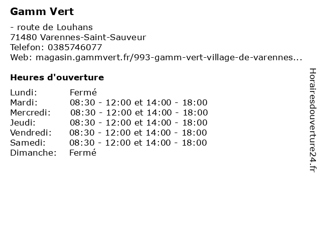 1 Gamm Vert (Distance: 7,59 km) . Route de Louhans, 71480 Varennes-Saint-Sauveur animalerie, animaux, annuel, gamm, horticulteur, jardin, jardinerie, vert 2 GAMM VERT (Distance: 7,82 km) La Charmette, 71480 Varennes-Saint-Sauveur animalerie, bricolage, gamm, granulé de bois, jardin, jardinerie, mobilier de jardin, plantes, pépinière, vert 3 GAMM VERT (Distance: 10,01 km) Les Courtelets, 71470 Montpont-en-Bresse animalerie, gamm, jardin, jardinerie, mobilier de jardin, plantes, pépinière, vert 4 GAMM VERT (Distance: 10,89 km) 23 Rue du Guidon, 71500 Louhans animalerie, gamm, jardin, jardinerie, mobilier de jardin, plantes, pépinière, vert 5 GAMM VERT (Distance: 18,82 km) Les Benoîts, 71470 Romenay animalerie, gamm, jardin, jardinerie, mobilier de jardin, plantes, pépinière, vert 6 Gamm vert (1er mars à fin octobre) (Distance: 9,39 km) . LES COURTELETS, 71470 MONTPONT EN BRESSE 1er, animalerie, animaux, fin, gamm, horticulteur, jardin, jardinerie, mars, octobre, vert |