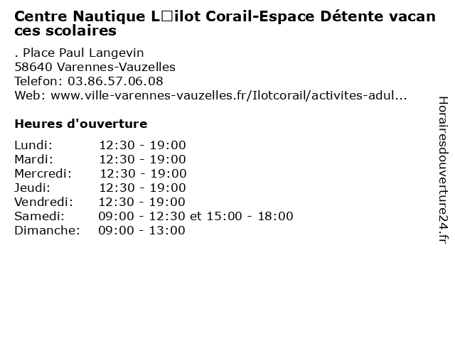 | Mercredi | 12:30-19:00 |