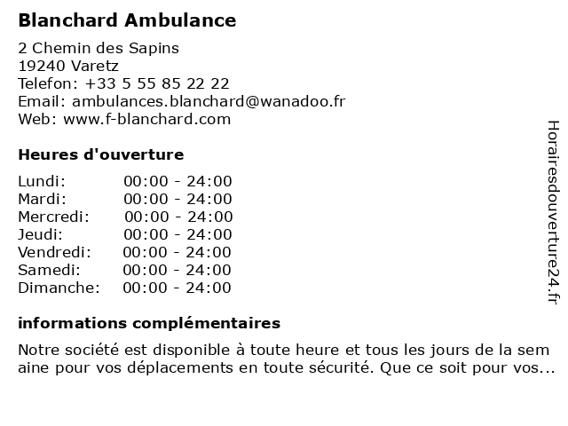 1 Blanchard Ambulances Taxis (Distance: 5,32 km) 2 Boulevard Jean Moulin, 19100 Brive-la-Gaillarde ambulances, blanchard, taxis 2 Brive _ _ Ambulance Auriel Sarl (Distance: 6,66 km) 52 Avenue Turgot, 19100 Brive-la-Gaillarde ambulance, auriel, brive, sarl 4 Maître Virginie Blanchard - Avocate (Distance: 7,52 km) 18 avenue Jean Jaurès, 19100 Brive-la-Gaillarde avocate, avocats, blanchard, civils, droits, juridiques, maître, virginie 6 Harmonie Ambulance (Distance: 25,28 km) 4 Rue du Dr Valette, 19000 Tulle agence, ambulance, ambulances, harmonie, médical, services, transports |