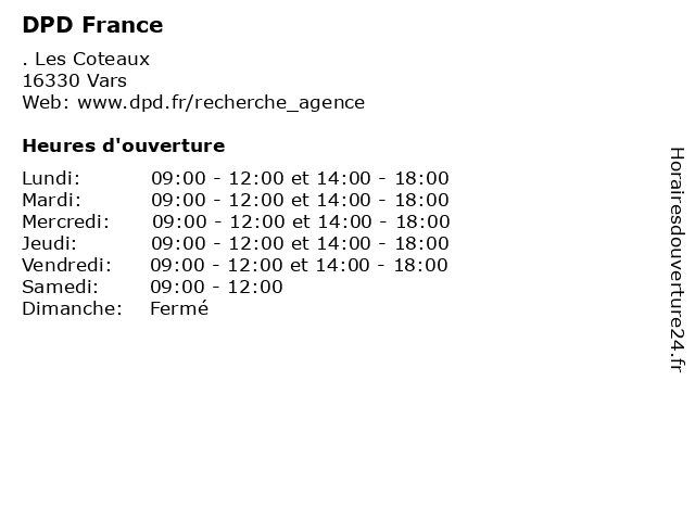 1 DPD France (Distance: 0,35 km) ZA Les Coteaux, 16330 Vars dpd, expédition, france, livraison, services 2 Artisans Fleuristes de France - Elefsina (Distance: 6,13 km) n/a Chaumes, 16430 Champniers artisans, bouquets, de, elefsina, fleuristes, flowers, france, the funeral, wedding collection 3 4 Picard (Contactez notre Service) (Distance: 10,26 km) 296 Route de Paris, 16160 Gond-Pontouvre contactez, la production française, les fruits, les légumes, notre, picard, produit développé en france, service, société française de produits surgelés, société: en cuisine, un magasin picard 5 France Express (Distance: 10,88 km) . Villeseche, 16710 St Yrieix sur Charente express, france, poste, services, transporteur 6 France Express (Heures limites de dépôt) (Distance: 10,88 km) . Villeseche, 16710 St Yrieix sur Charente de, dépôt, express, france, heures, limites, poste, services, transporteur |