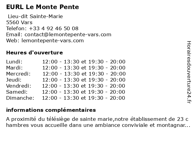 | Lundi | 12:00-13:30 et 19:30-20:00 |