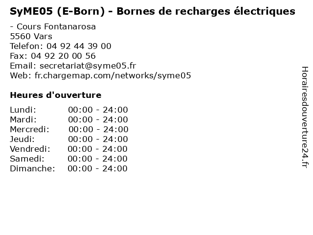 1 SyME05 (E-Born) - Bornes de recharges électriques (Distance: 0,15 km) 5271B Cours Yves Brayer, 05560 Vars automobile, born, borne, bornes, de, recharge, recharges, syme05, électrique, électriques 2 SyME05 (E-Born) - Bornes de recharges électriques (Distance: 3,58 km) - Route départementale D431, 05560 Vars automobile, born, borne, bornes, de, recharge, recharges, syme05, électrique, électriques 3 SyME05 (E-Born) - Bornes de recharges électriques (Distance: 6,66 km) - Pra Vesqua, 05200 Crévoux automobile, born, borne, bornes, de, recharge, recharges, syme05, électrique, électriques 4 SyME05 (E-Born) - Bornes de recharges électriques (Distance: 11,63 km) - Parking Arsenal, 05600 Mont-Dauphin automobile, born, borne, bornes, de, recharge, recharges, syme05, électrique, électriques 5 SyME05 (E-Born) - Bornes de recharges électriques (Distance: 12,25 km) - Route Nationale N94, 05600 Eygliers automobile, born, borne, bornes, de, recharge, recharges, syme05, électrique, électriques 6 SyME05 (E-Born) - Bornes de recharges électriques (Distance: 13,09 km) - Allée des Chamois, 05200 Les Orres automobile, born, borne, bornes, de, recharge, recharges, syme05, électrique, électriques |