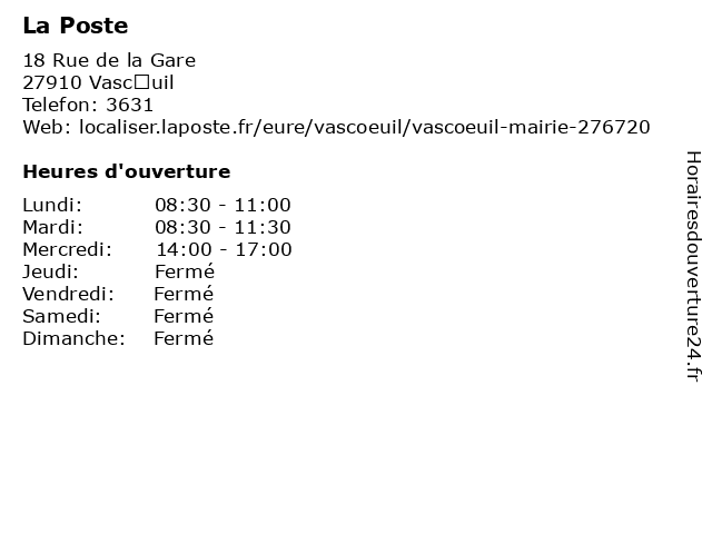 1 La Poste (Distance: 2,09 km) 14 Rue de l'Eglise, 76780 Croisy-sur-Andelle express chronopost, la, poste, réexpédition internationale 3 La Poste (Distance: 6,24 km) 190 Route du Château, 76116 Martainville-Épreville express chronopost, la, poste, réexpédition internationale 5 La Poste (Distance: 9,23 km) 84 Rue General De Gaulle, 27910 Perriers-sur-Andelle express chronopost, la, poste, réexpédition internationale 6 |