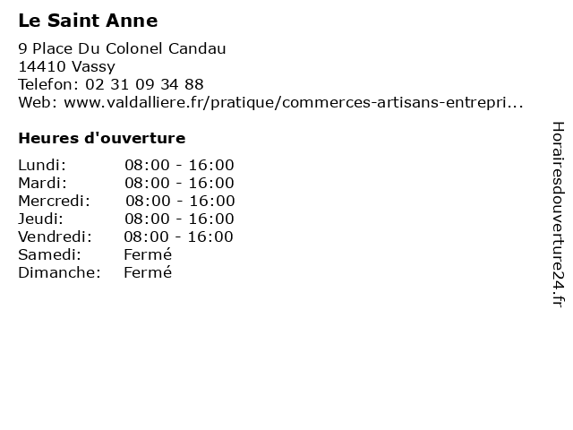 | Samedi | Fermé |