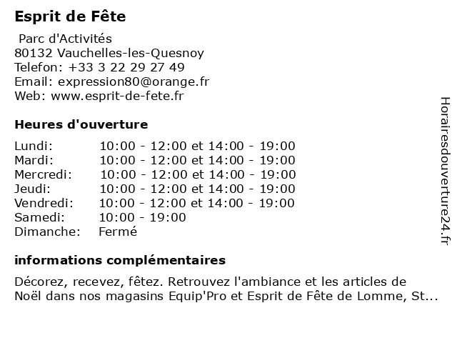 | Lundi | 10:00-12:00 et 14:00-19:00 |