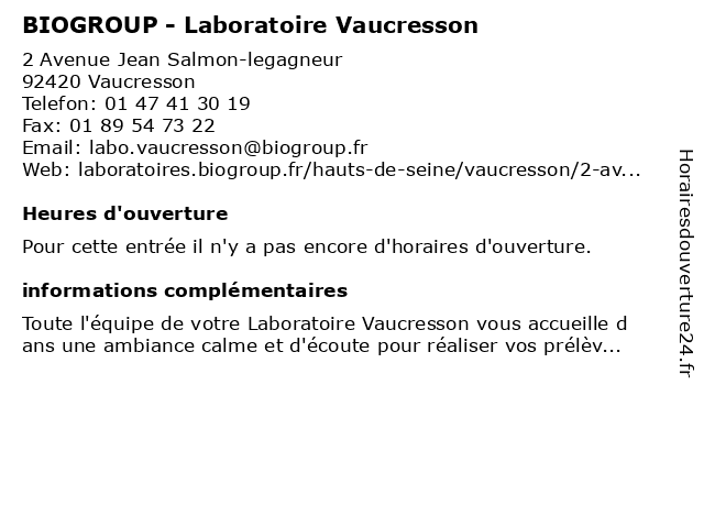 | Appeler BIOGROUP - Laboratoire Vaucresson | |