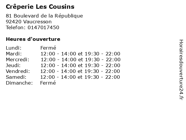 Samedi | 12:00-14:00 et 19:30-22:00 |