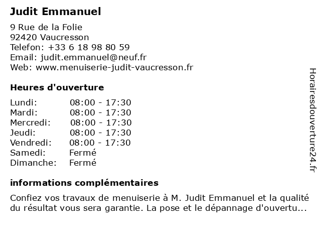 | Samedi | Fermé |