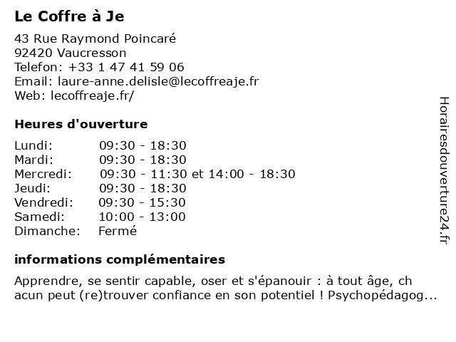 | Mercredi | 09:30-11:30 et 14:00-18:30 |