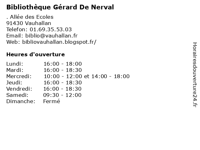 | Mercredi | 10:00-12:00 et 14:00-18:00 |