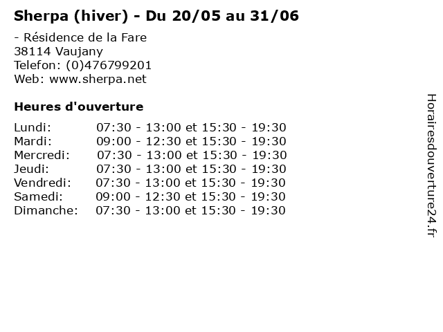 | Dimanche | 07:30-13:00 et 15:30-19:30 |