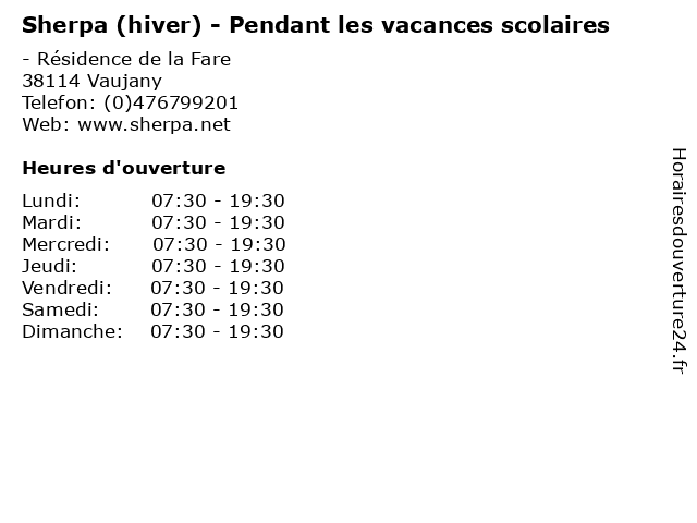 | Vendredi | 07:30-19:30 |