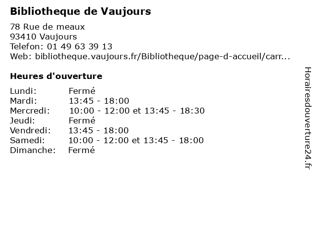 | Mercredi | 10:00-12:00 et 13:45-18:30 |