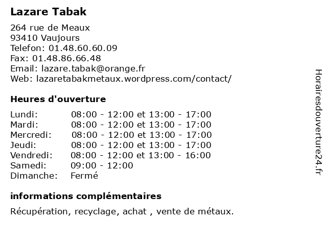 Lundi | 08:00-12:00 et 13:00-17:00 |