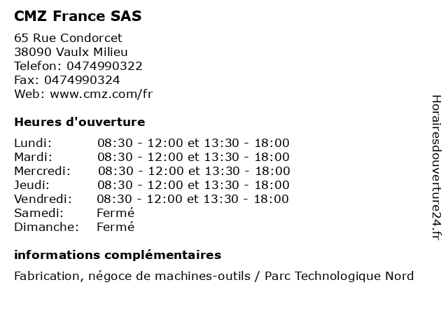 | Lundi | 08:30-12:00 et 13:30-18:00 |
