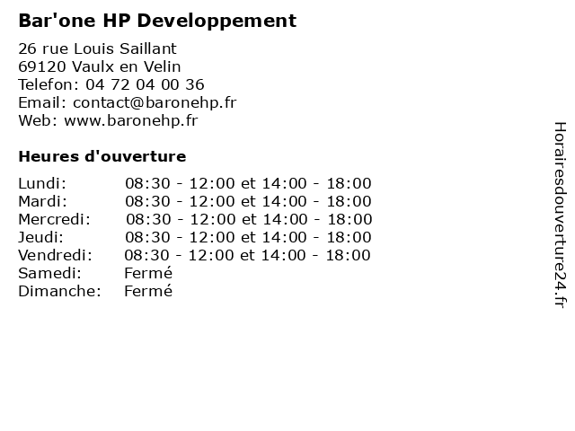 | Lundi | 08:30-12:00 et 14:00-18:00 |