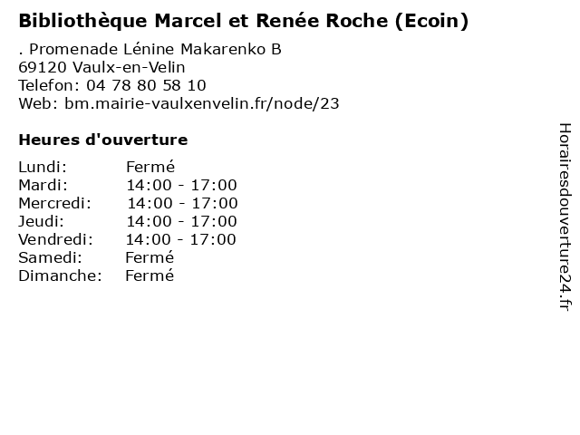 1 Bibliothèque Paul Éluard (Village) (Distance: 0,99 km) 55 rue de la République, 69120 Vaulx-en-Velin bibliothèque, cd, dvd, jeux videos, livres, paul, revues, village, éluard 2 Bibliothèque Georges Perec (Mas du Taureau) (Distance: 1,03 km) . rue Louis Michoy, 69120 Vaulx-en-Velin bibliothèque, cd, du, dvd, georges, jeux videos, livres, mas, perec, revues, taureau 3 Bibliothèque Marie-Ghislaine Chassine (Sud) (Distance: 2,70 km) 55 Rue Joseph Blein, 69120 Vaulx-en-Velin bibliothèque, cd, chassine, dvd, ghislaine, jeux videos, livres, marie, revues, sud 4 Bibliothèque Genêts (Distance: 3,36 km) 10 rue Jacques-Daligand, 69500 Bron bibliothèque, cd, dvd, genêts, jeux videos, livres, revues 5 King Marcel Lyon Montchat (Distance: 3,67 km) 7 Rue des Sports, 69003 Lyon king, lyon, marcel, montchat 6 Bibliothèque Terraillon (Distance: 4,07 km) 62 rue Marcel-Bramet, 69500 Bron bibliothèque, cd, dvd, jeux videos, livres, revues, terraillon |