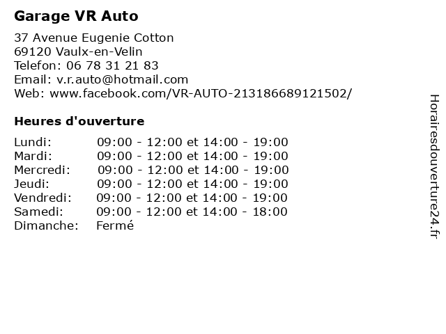 | Vendredi | 09:00-12:00 et 14:00-19:00 |