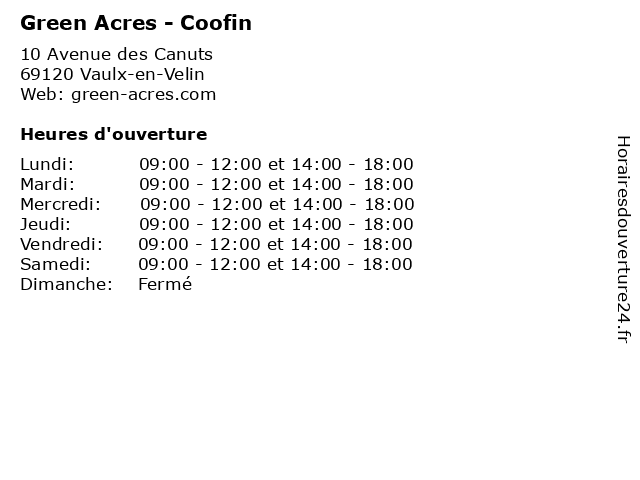 | Vendredi | 09:00-12:00 et 14:00-18:00 |