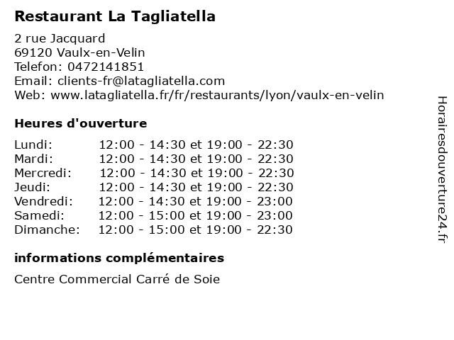 | Mardi | 12:00-14:30 et 19:00-22:30 |