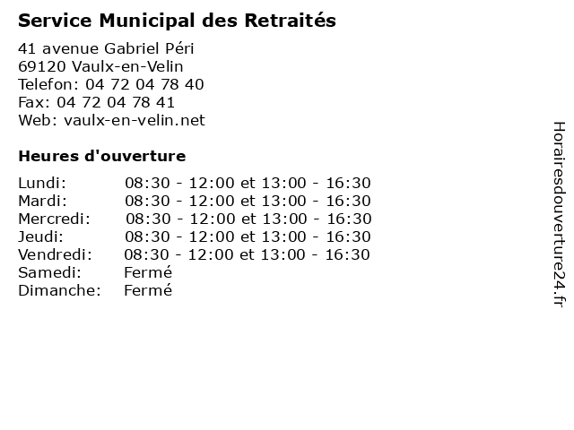 | Lundi | 08:30-12:00 et 13:00-16:30 |