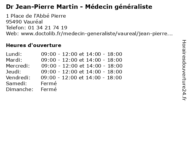 | Lundi | 09:00-12:00 et 14:00-18:00 |