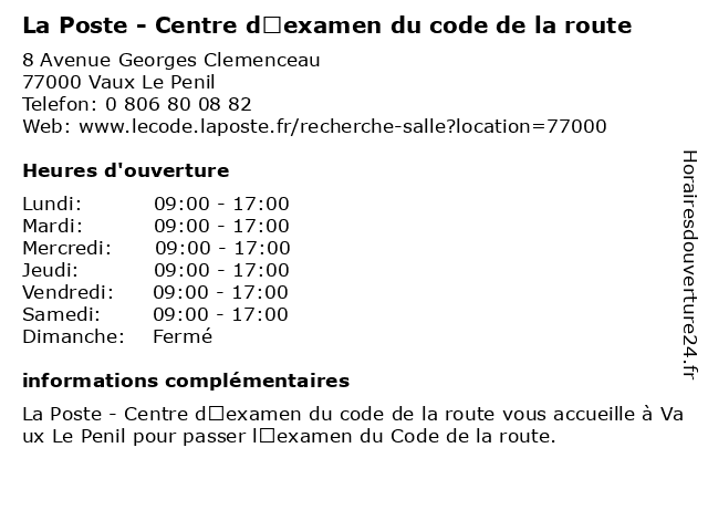 Termes de recherche pour La Poste - Centre d’examen du code de la route:poste, la, du, de, route, centre, code, d’examen, centre d'évaluation scolaire, école technique |