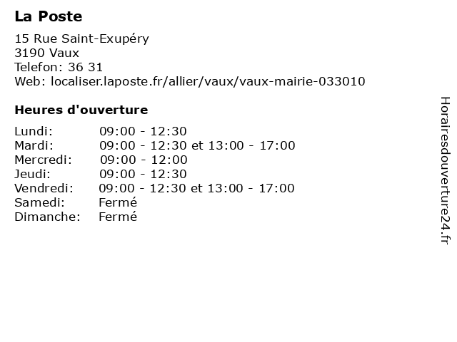 | Mardi | 09:00-12:30 et 13:00-17:00 |