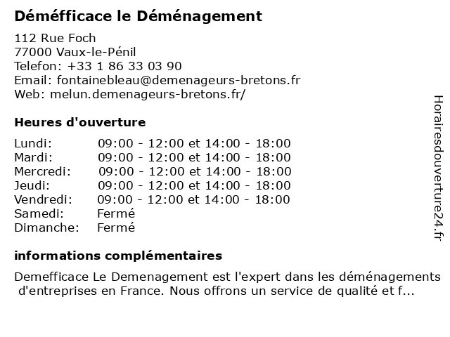 | Lundi | 09:00-12:00 et 14:00-18:00 |