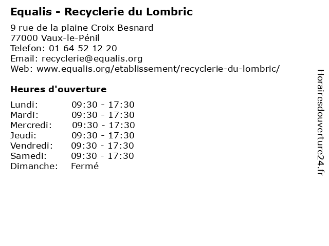 | Lundi | 09:30-17:30 |