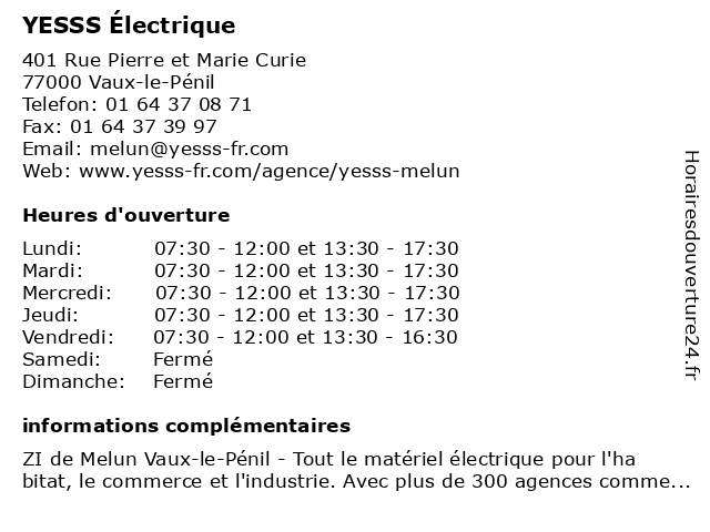| Lundi | 07:30-12:00 et 13:30-17:30 |