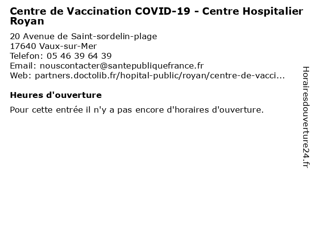 1 Centre Hospitalier Royan-Atlantique (Distance: 0,00 km) 20 Avenue de Saint-Sordelin Plage, 17640 Vaux-sur-Mer atlantique, centre, hospitalier, royan 2 Centre Hospitalier Centre Hospitalier de Royan (Royan) (Distance: 0,27 km) 20 Avenue de Saint-Sordelin à Vaux, 17205 Royan centre, de, docteur, hospitalier, medecins, royan, sante 3 Activ'Expertise Royan (Distance: 0,78 km) 9 Boulevard de la Côte de Beauté, 17640 Vaux-sur-Mer activ'expertise, royan 4 Royan Stores (Distance: 1,82 km) 81 Rue de la Roche, 17640 Vaux sur Mer pergolas, portails, royan, stores, stores exterieurs, volets roulants 5 B&B Hotel Royan La Palmyre (Distance: 1,83 km) 4 Rue des Pâquerettes, 17640 Vaux-sur-Mer b&b, bar, cafe, hotel, la, palmyre, restaurant, royan, service 6 Golf de Royan (Distance: 3,94 km) 7 rue de la Palmyre, 17420 Saint Palais sur Mer 18 trous, competitions, de, golf, golf royan, pro shop, restaurant, royan  |