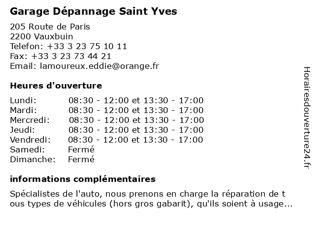 | Lundi | 08:30-12:00 et 13:30-17:00 |