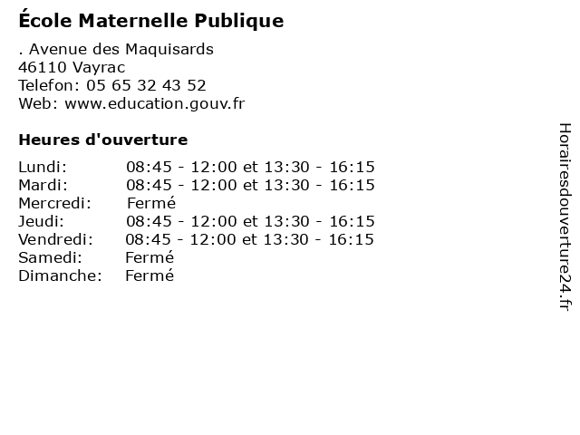 1 École Maternelle Publique (Distance: 6,08 km) . Le Bourg, 46110 Saint-Michel-de-Bannières cours, education, maternelle, publique, services, école 2 École Maternelle Publique (Distance: 8,04 km) . Avenue de Souillac, 46600 Martel cours, education, maternelle, publique, services, école 3 École Maternelle Publique (Distance: 9,08 km) - Lieu-dit Lasvaux, 46110 Le Vignon-en-Quercy cours, education, maternelle, publique, services, École, école 4 École Maternelle Publique (Distance: 9,46 km) . Le Bourg, 19500 Marcillac-la-Croze cours, education, maternelle, publique, services, école 5 École Maternelle Publique (Distance: 12,38 km) . Rue des écoles, 46130 Biars-sur-Cère cours, education, maternelle, publique, services, école 6 Ecole Maternelle Publique Les Lucioles - Beynat (Distance: 11,48 km) - Meyssac, 19190 Beynat beynat, ecole, education, les, lucioles, maternelle, publique, services |