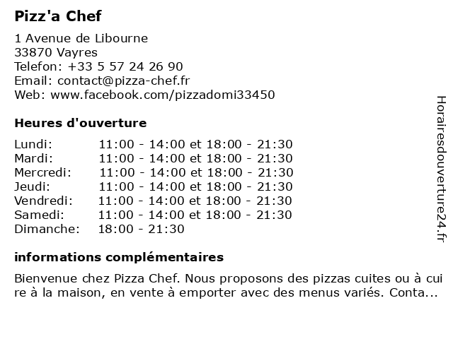 | Mercredi | 11:00-14:00 et 18:00-21:30 |